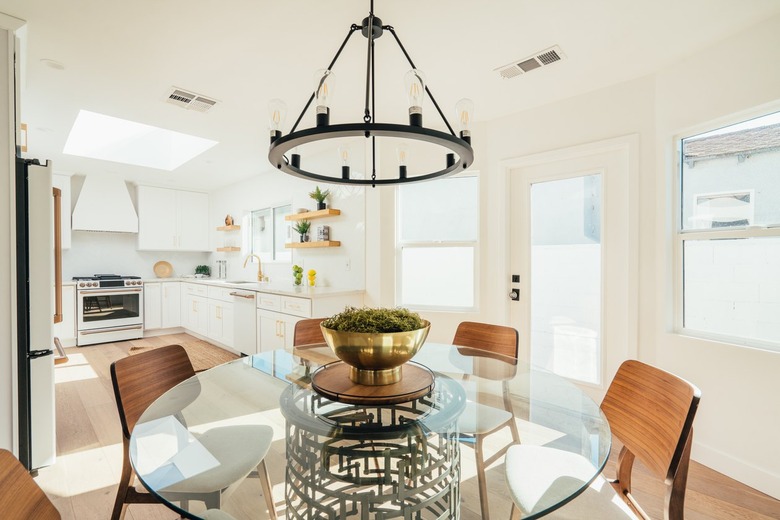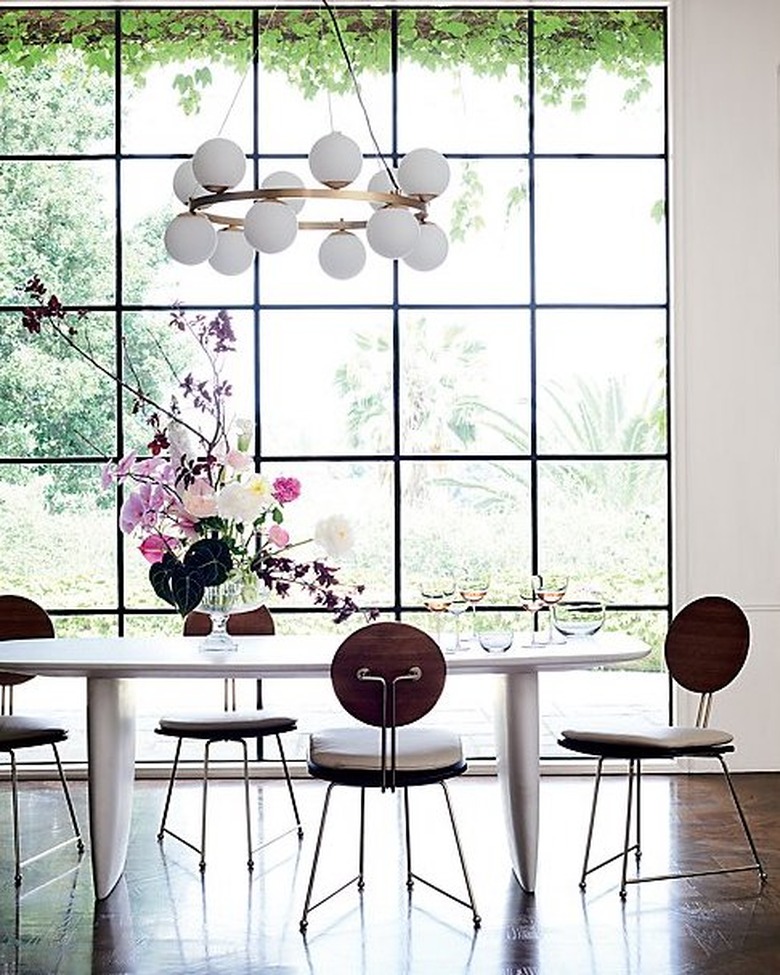- Simple, geometric designs are less gaudy and more timeless than crystal chandeliers