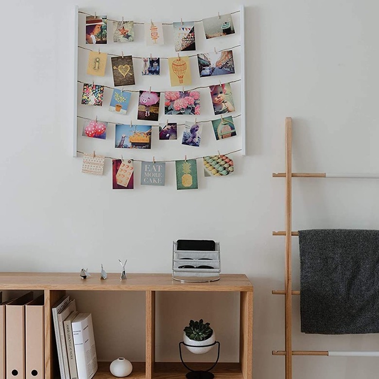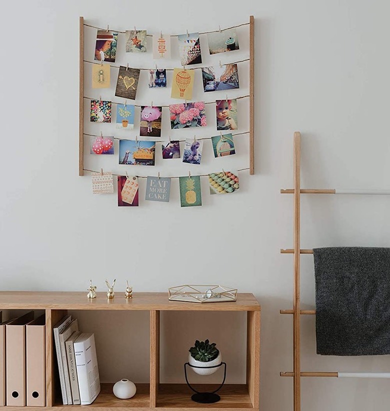 Share and enjoy your memories with this lightweight photo display. Simply attach the pictures to the twine cords using the provided closed pins for a crafty look that's a new and easy take on framed photos.
