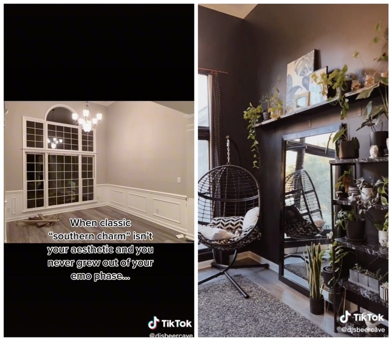 Similar to a sunroom, you might not except to see the color black all over a plant room. However, it works! TikToker @djsbeercave completely transformed their room with a "Southern charm" aesthetic into a black-and-white modern wonder where greenery pops.