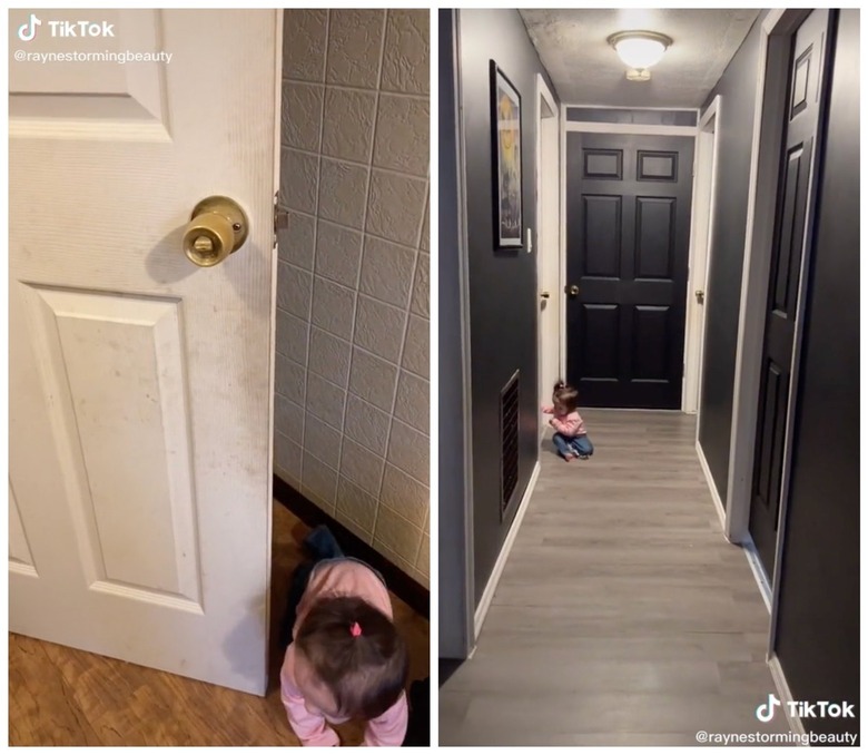 Tired of their white doors getting covered in grim and sticky fingerprints, @raynestormxtattoos on TikTok decided to paint their doors black. Then, they took it one step further by painting their entire hallway black. Who ever said black paint can't provide personality?