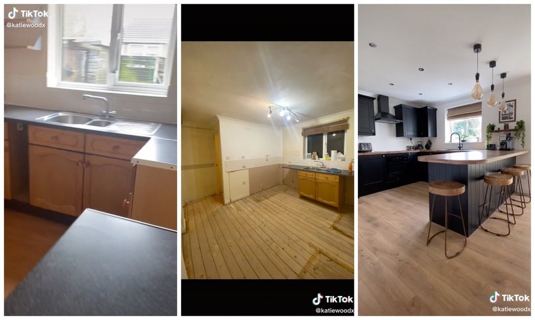 If you're tired of trendy green kitchen cabinets, then consider going with an emotive black hue. As seen in this TikTok by @katiewoodx, black kitchen cabinets pair perfectly with silver appliances and medium-tone woods.