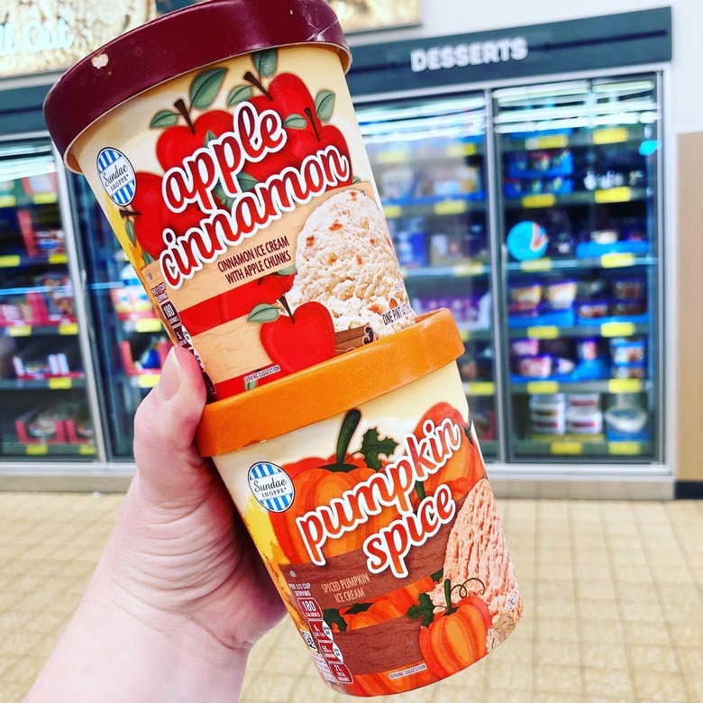 I scream, you scream, we all scream for autumnal ice cream! Fall-flavored treats don't have to be limited to just coffee and cookies. The eagle eyes of Instagrammer @aldifavoritefinds spotted two new seasonal ice cream flavors in the freezer aisle at Aldi: apple cinnamon and pumpkin spice.