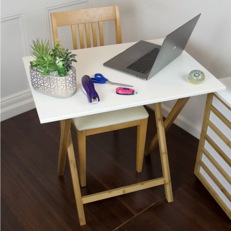 This simple folding desk collapses completely flat, so it's easy to tuck into a closet, lean against a wall, or even slide underneath a sofa when you're not using it. Impressively, it has a rather spacious amount of surface area for working too.
