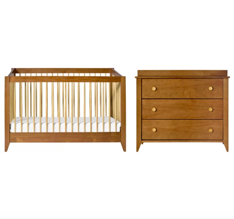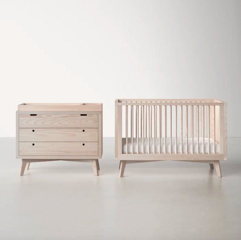 This Scandinavian, midcentury-inspired set from AllModern features a solid pine wood crib and dresser, which doubles as a changing table. This minimalist furniture set is designed to grow with your little one thanks to the three-in-one convertible crib that transitions from crib to toddler bed to day bed.
