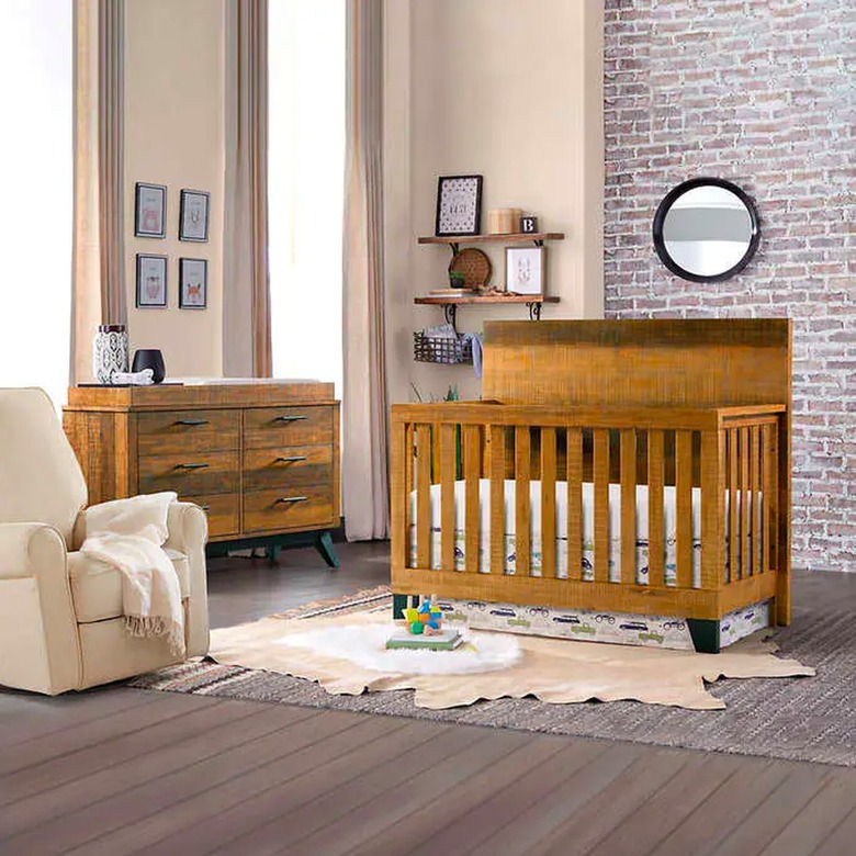 While we might associate Costco with bulk food and excellent by-the-slice pizza, the retailer has an expansive — and dare we say underrated — furniture selection. If your vibe is more rustic, this two-piece nursery set, made of stained solid wood, ties your baby's space into the home's greater interior theme. This set includes a convertible crib with conversion rails and a six-drawer dresser.