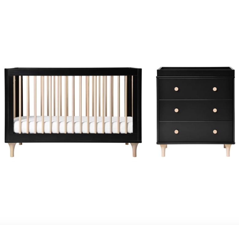 This modern-inspired set from (can you guess?) AllModern features sleek, shining black paint and natural wood feet, knobs, and spindles — though it's also available in gray and white. The set includes a convertible crib and a three-drawer dresser with the thoughtful addition of a removable changing tray.