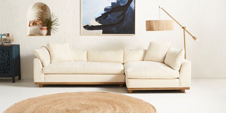 With one look at Anthropologie's home decor, it's no surprise that shoppers flock to the brand for stunning accent pieces that will steal the show in any living room. And its furniture is no different. While Anthropologie sofas and sectionals are bigger-ticket items, the brand caters to a range of styles — including midcentury modern, boho, minimalist, eclectic, and traditional — that anyone can enjoy.