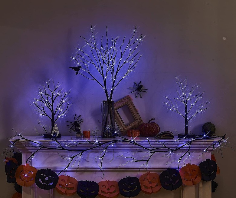 Cast a spooky glow this Halloween with this glitter garland complete with 48 LED lights and eight settings, including orange, purple, and twinkle.