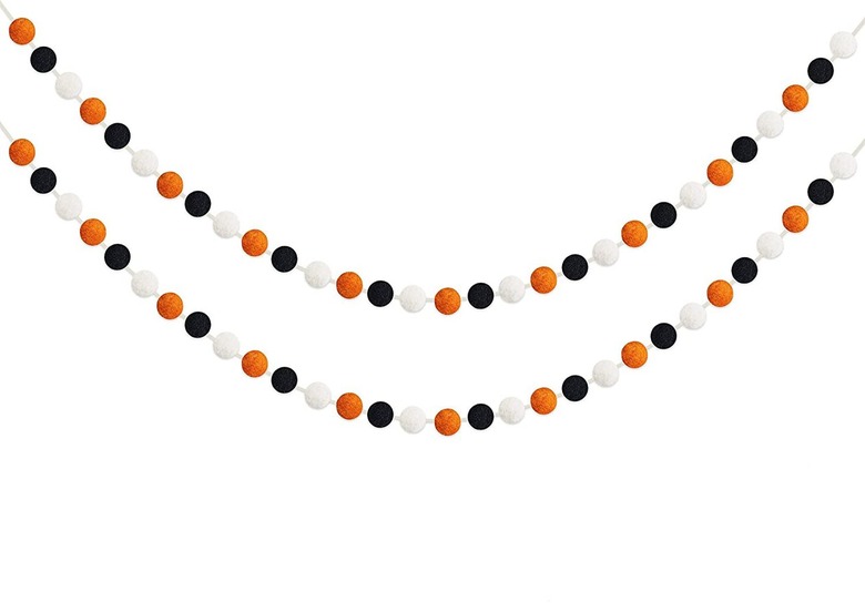 Looking for a subtle and stylish way to add Halloween decor to your home? Try this felt ball garland, which has a classic Halloween color scheme of black, white, and orange.