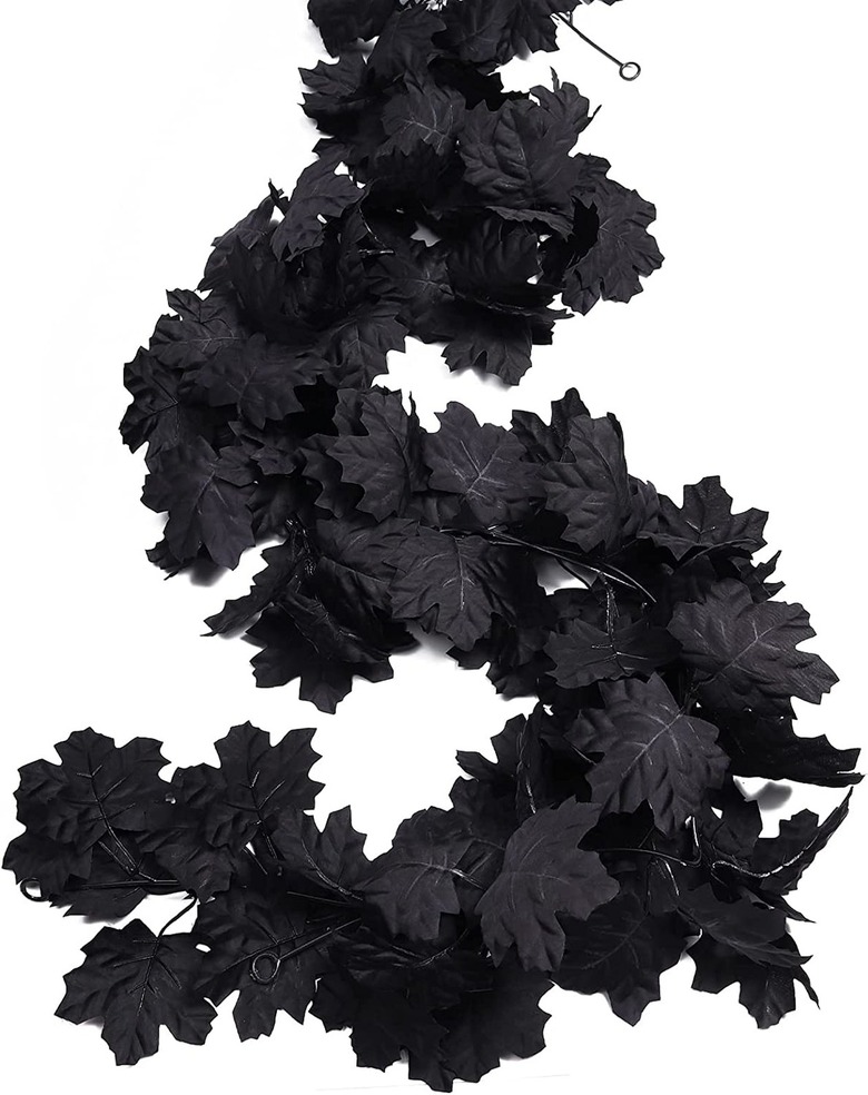 With faux black maple leaves, you can use this garland all throughout October and even into the holiday season. Set it up on your mantel with some artificial pumpkins or along your table for a spooky, yet chic, Halloween tablescape.