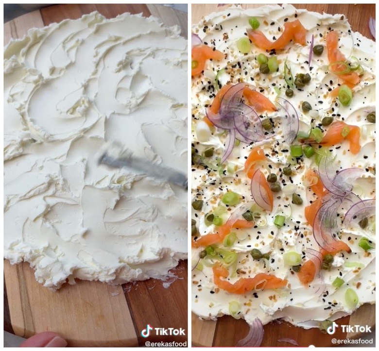 If you've been scrolling through TikTok recently, you've no doubt probably seen people smearing butter on wooden cutting boards and diving in with hearty pieces of bread. Butter boards are currently all the rage, but TikTok user @erekasfood has added their own unique twist by swapping butter for cream cheese.