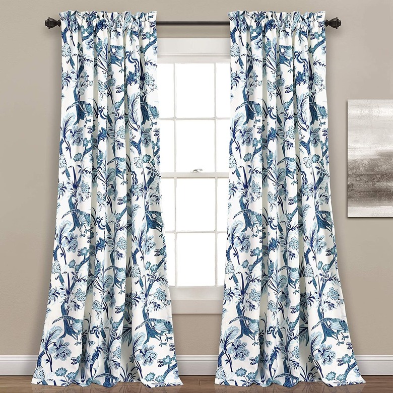 Window treatments are often overlooked, but the right ones can instantly transform a space. True to coastal grandmother style, these white and blue curtains recall chinoiserie illustrations with a delicate mix of flora and fauna. Although they're made with a room-darkening fabric, we recommend keeping them open to let natural light shine through.