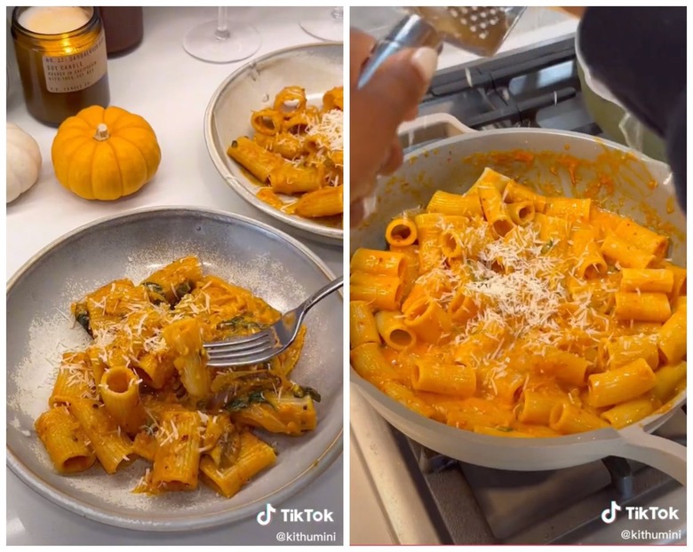 'Tis the season for pasta dinners and warm comfort food, preferably of the pumpkin variety. TikToker @kithumini knows this for sure, and is single-handedly responsible for our newfound spicy vodka pasta craving, but this time with a seasonal twist — added pumpkin.