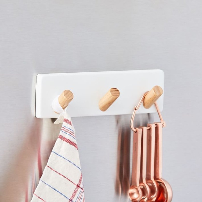 The trick is to use sponge holder — yes, a sponge holder. More specifically, you'll need to use one with suction cups so that it can adhere to the wall of your fridge.