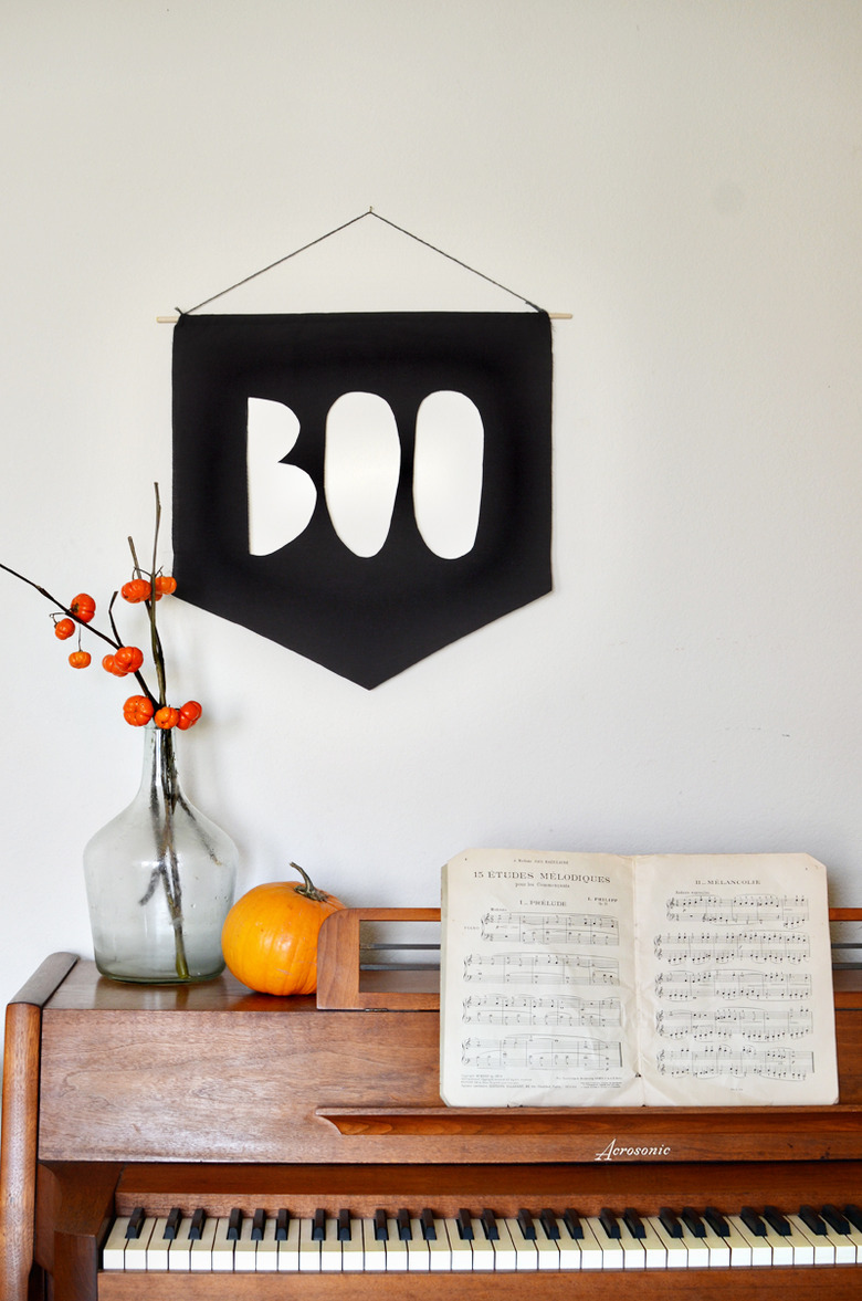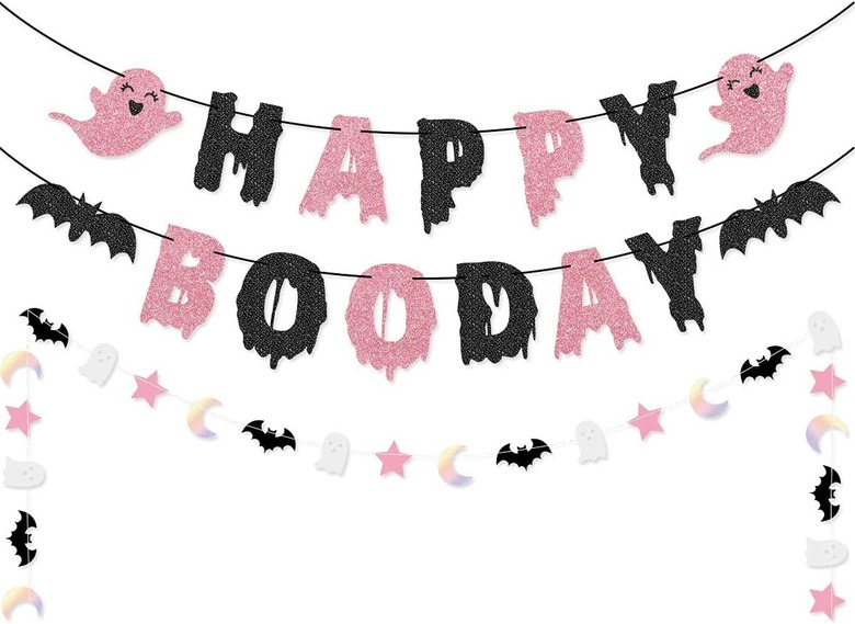 Throw this banner across your door to let trick-or-treaters know you're about the festivity, not the scares. The "boo" says spooky, but the pretty hues and friendly ghosts say otherwise.