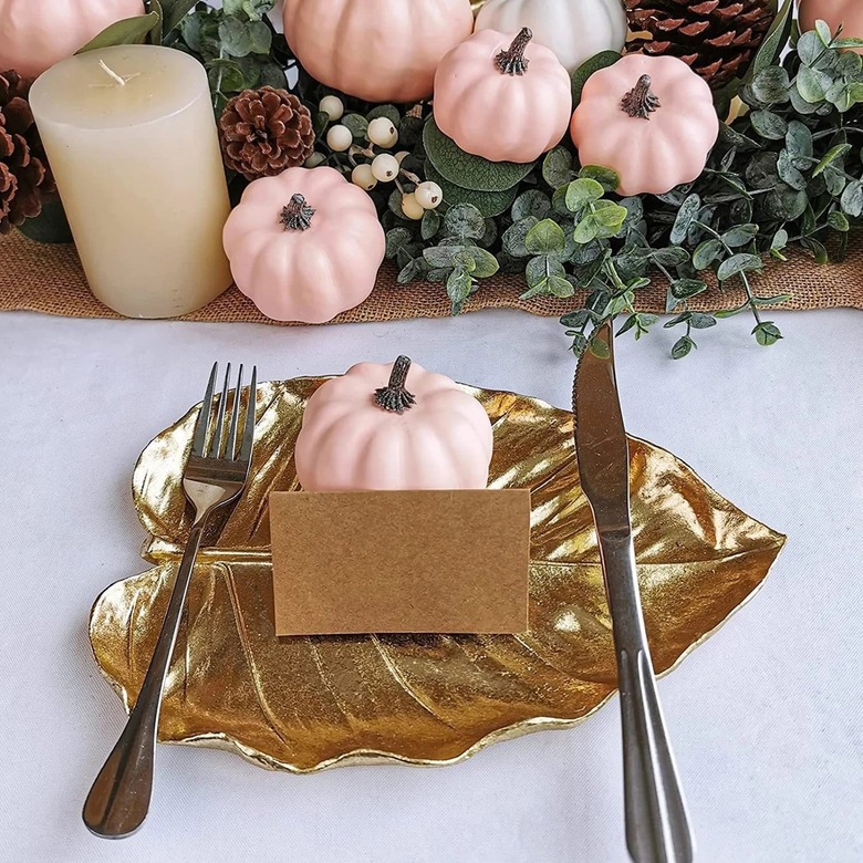 There's pretty much no way to go wrong with these pastel-painted faux pumpkins. Pile them into a clear hurricane glass for your tablescape, scatter them on the front porch, tuck a few on the mantle ... the options are endless.