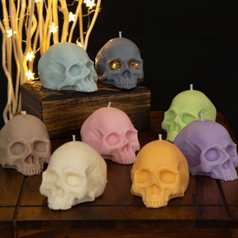 4. Waxywix Pastel Half Skull Candle, $11.97