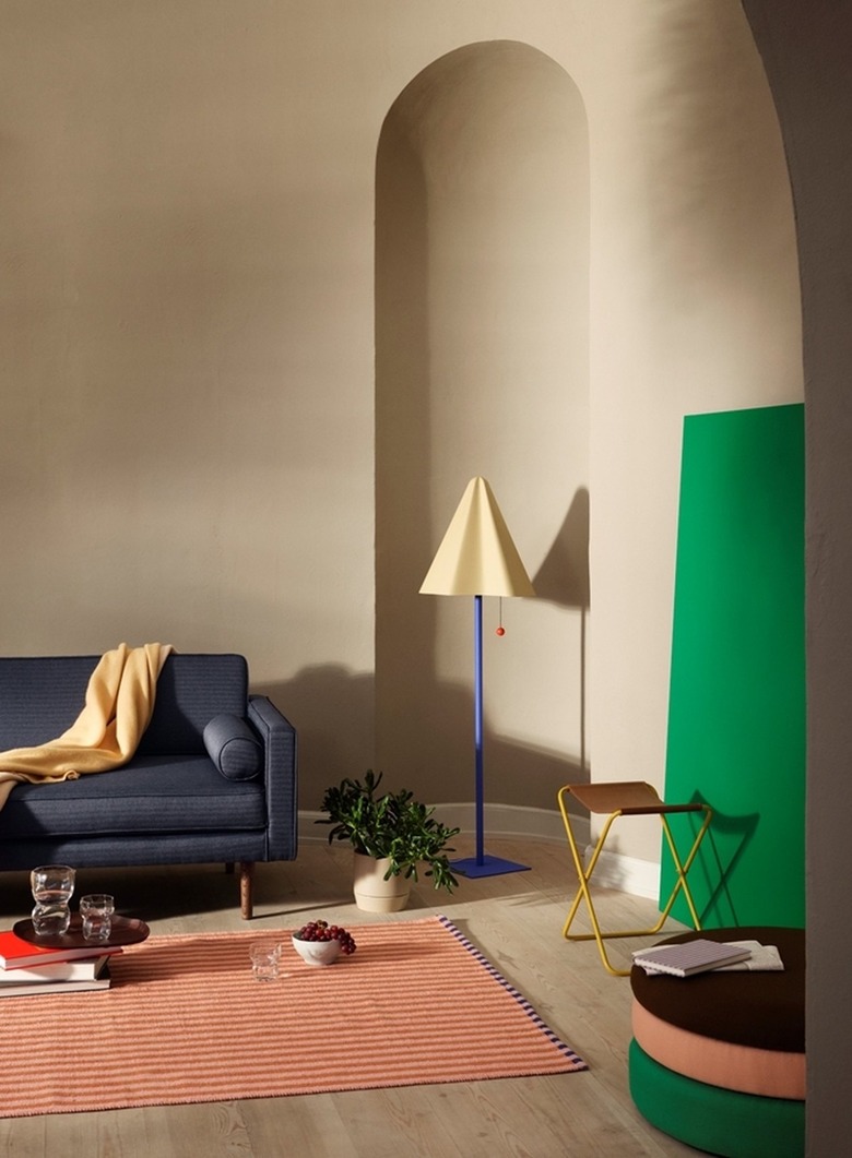 The Copenhagen-based brand just released some minimalistic lampshades that are playful, bursting with color, and embody unconventional shapes. The assortment includes 11 pieces available as a pendant lamp, floor lamp, and table lamp, all in three colors: Pureed Pumpkin, Baja Blue, and Light Sand.