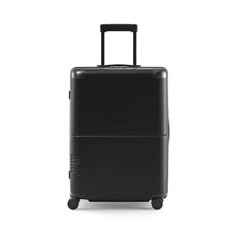 Specs: The July checked bag is well-made, but I would say errs on the side of no-frills. It's made of a very lightweight German polycarbonate shell that weighs 8.3 pounds and the exterior measures out to 26 by 18.75 by 11 inches. It includes proprietary SilentMove wheels that glide very easily and are silent, a hidden laundry bag to use while traveling, and an interior Y-Strap compression system to help fit more.