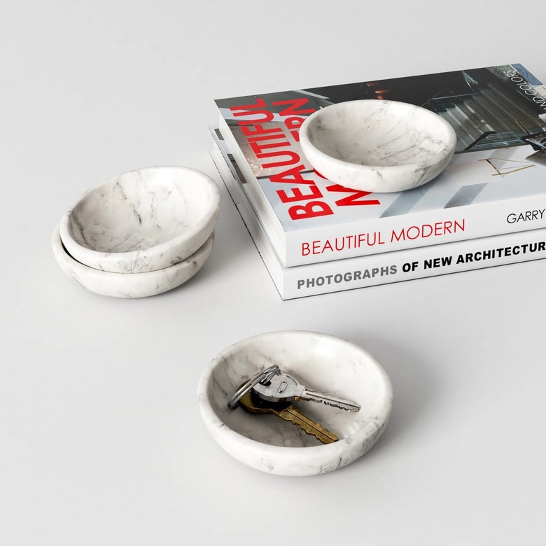 These versatile petite marble dishes can be used as anything from salt and pepper holders to jewelry dishes.