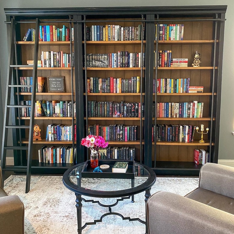 Ladders are not just for old-timey bookstores — you can have one right in your own home, even if you don't really need one to reach the high shelves. Amanda of @thefunsizereader has one that slides across the entirety of the shelf, making it accessible at every point.