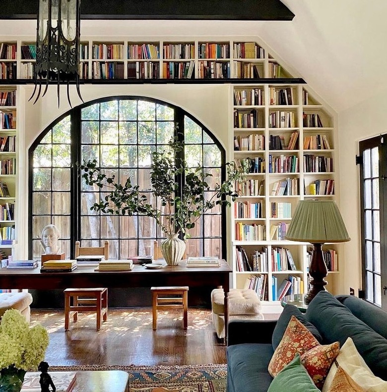 Gillian Lawlee designed this space for a client and the results did not disappoint. The creator got innovative and used the wall surrounding an arched window as the bookcase, maximizing space while adding extra beauty to an already stunning room.