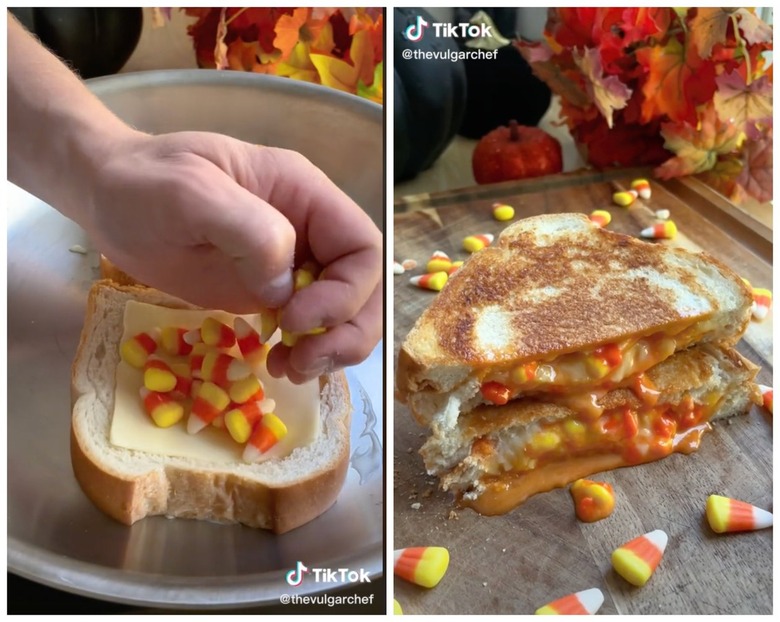 Candy corn is already controversial enough as it is, but what about adding it to arguably one of the greatest comfort foods of all time? Influencer @thevulgarchef shared their recipe for candy corn grilled cheese, and it's, well, vulgar to say the least.