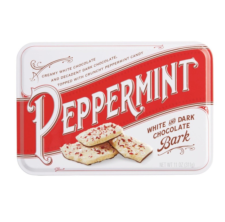 Crafted with peppermint candy, peppermint oil, and chocolate, this World Market white and dark chocolate peppermint bark is a gift that'll be delectably enjoyed. Its tin package can also be enjoyed later.