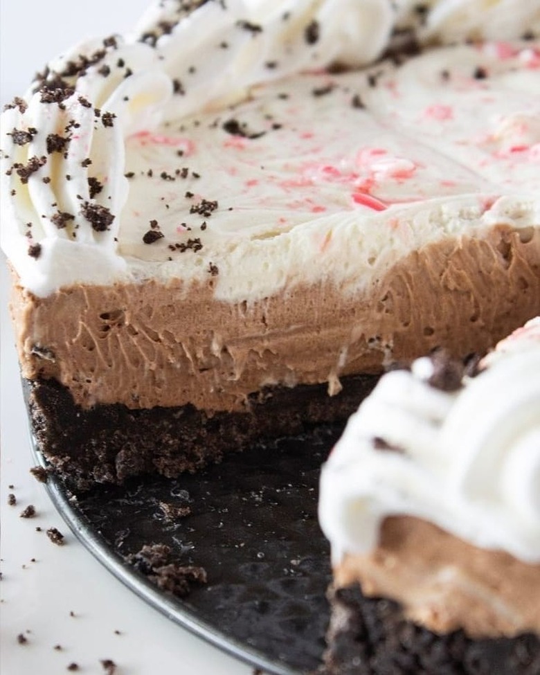 Aside from the appeal of eating cheesecake, you don't even have to turn your oven on to do it. The no-bake dessert by June of Practically Homemade uses Oreos as a base and sweetened condensed milk to get the creamy filling. Plus, the crushed candy canes make it a festive seasonal choice.