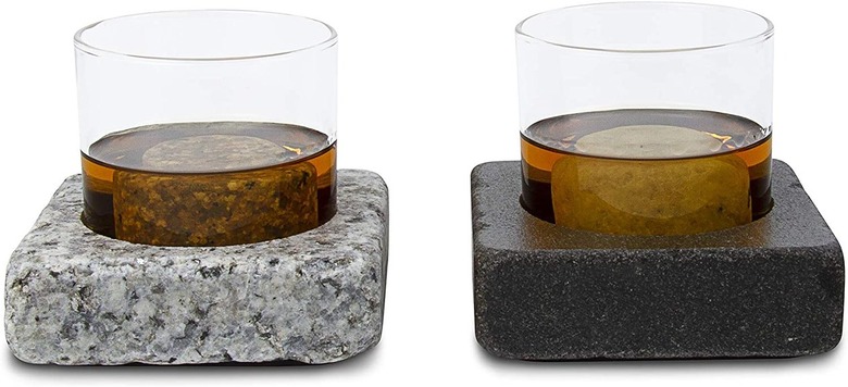 Each set comes with two chilling coasters, two whiskey stones, and two glasses. His drink will stay cool, look cool, and stay in place.