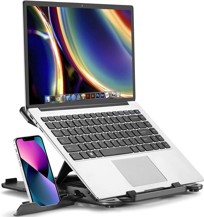 The LIFELONG X-Tend laptop stand is incredibly ergonomic, making it easy to customize a laptop to anyone's unique working needs. This foldable design features eight adjustable height and angle combinations, a seamless swivel function, and strategically placed vents for easy airflow. Need to keep your phone close by while you work? Just use the detachable phone holder that's included.