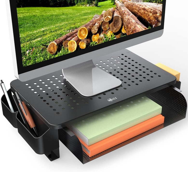 If you're looking for a sturdy and adjustable laptop stand that you can take from your desk to your bed and back, this pick is for you. Made by HUANUO, this sleek black laptop stand can be configured in a number of different ways based on your needs throughout the workday. It also includes a detachable mouse tray and two USB-powered CPU fans on the underside to keep your laptop nice and cool.