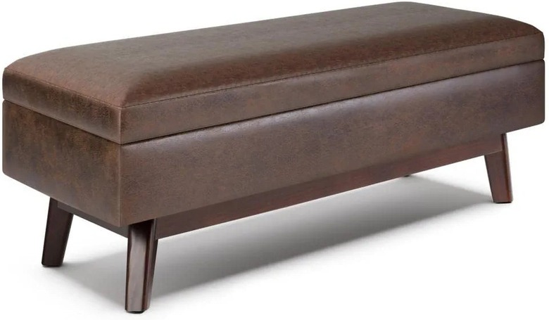 Forget velvet and wood — this faux leather storage ottoman provides a robust look with its deep but warm brown hue. You can also pick from other leather colors to best suit your design style. We think the bench would look great in an office or a den doubling as an ottoman or a coffee table.