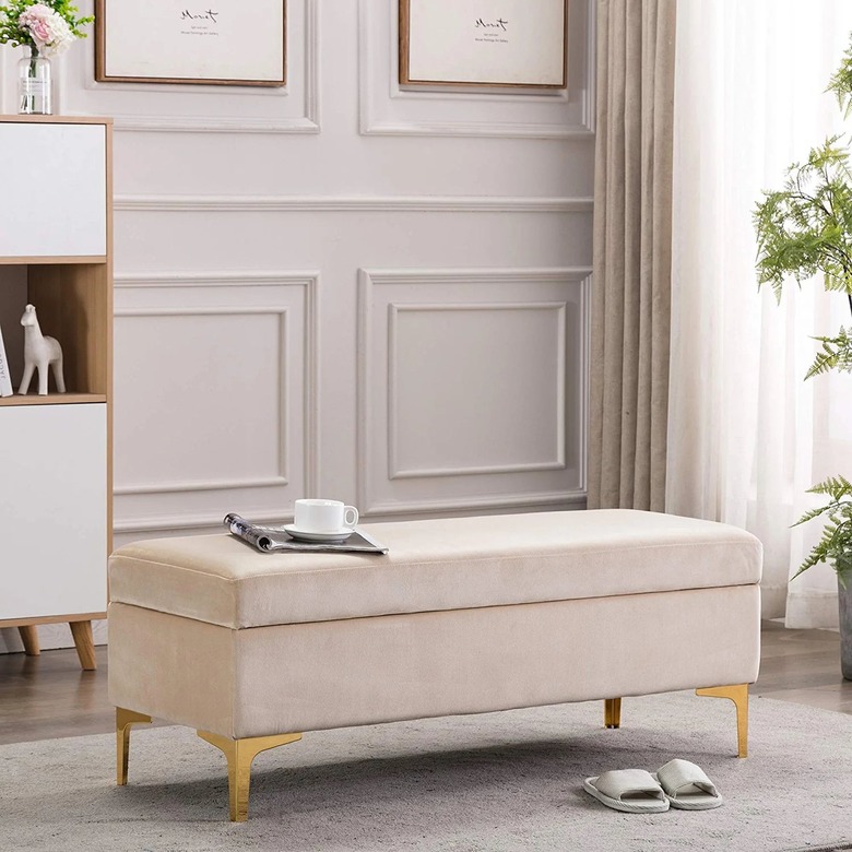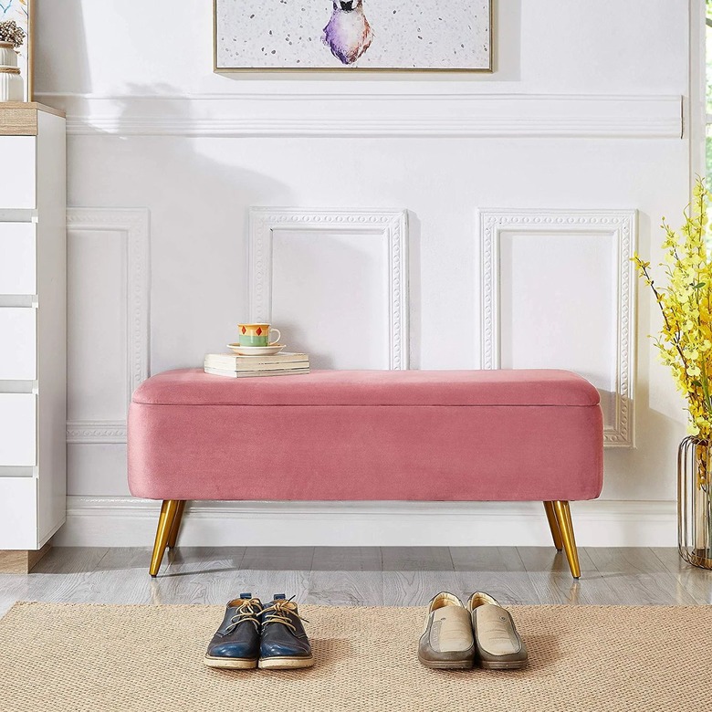 Want to play with color? Opt for this velvet storage bench, which comes in rose, avocado green, and lake blue. There's also a gray colorway, which is much more neutral. But we think adding some color to a room via a storage bench is an effective design choice.