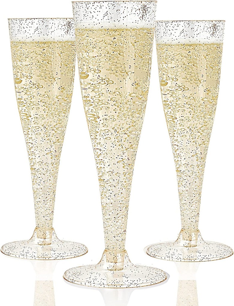 Cheers to the cutest disposable flutes we've ever seen. Each set comes with 30 plastic glasses that'll add extra sparkle to your favorite champagne.