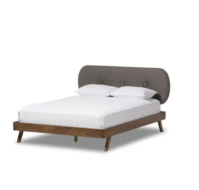 This option from Baxton Studio, available on Home Depot, features an upholstered, button-tufted headboard that rounds out at the ends. And at the base, you'll find solid rubberwood with a warm walnut finish. While the look is obviously the main reason we're drawn to this bed frame, we also love that Baxton Studio made this headboard adjustable, allowing you to move it to your preferred height.