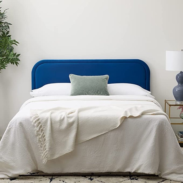 Mimic the rounded rectangular shape of your mattress with this low-profile headboard from Amazon, which comes in bright colors like royal blue, marigold, and chartreuse; softer ones like blush and gray; and jet black for a bold look. The overall look gives midcentury modern meets minimalist design vibes.