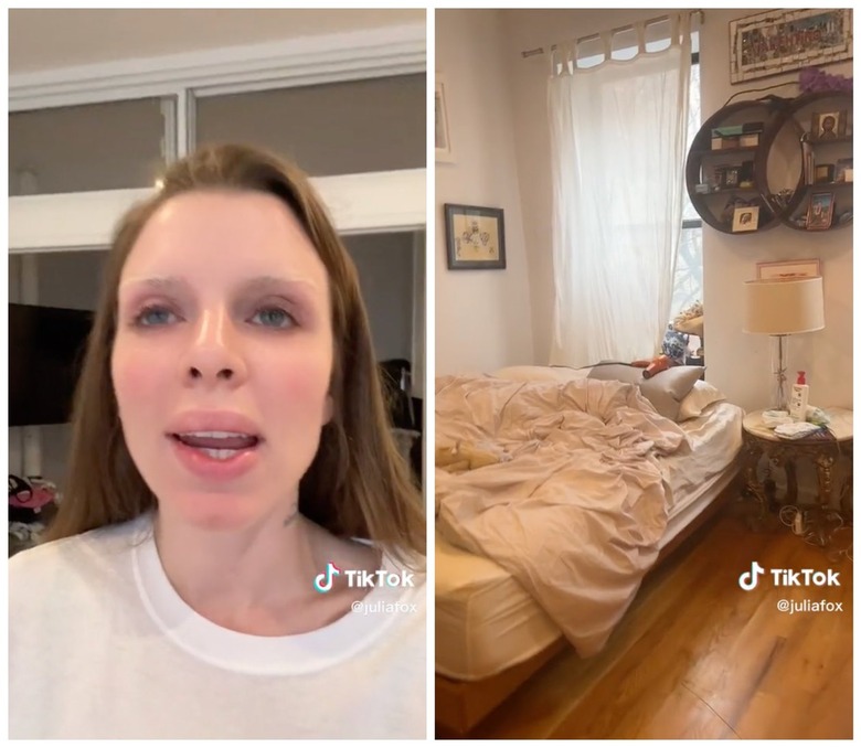 Celebrities, they're just like us. Julia Fox, Italian-American actress, model, and TikToker who believes in "maximum transparency," just showed off her tiny two-bedroom apartment in New York City in a video that now has over 6.8 million views. The star lives in the space with her adorable 2-year-old son, Valentino. No matter what your personal opinion is on Fox, her non-aesthetic home will definitely make NYC dwellers feel seen.