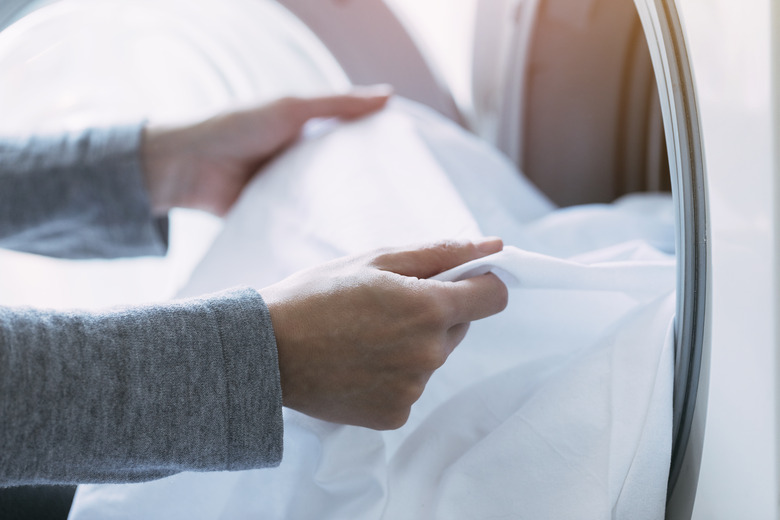Choosing the wrong washing temperature can wreak havoc on a down comforter. "Hot water (above 60 degrees Celsius or 140 degrees Fahrenheit) can shrink the fabric and damage the down feathers," Guerrero tells Hunker. "Cold water is not recommended, as it may not effectively remove dirt and stains."