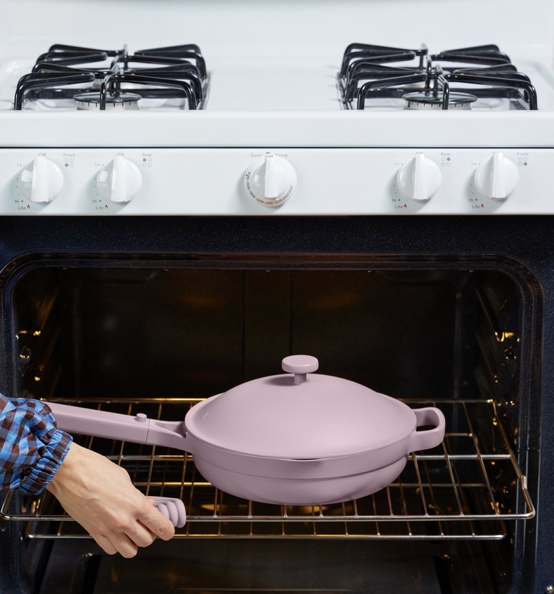 The Always Pan 2.0 features Thermakind, a 100% toxin-free, nonstick ceramic coating designed to last 50% longer than others. It's made from an "ultra-conductive" aluminum core made from post-consumer waste and is oven-safe up to 450 degrees Fahrenheit. And last but not least, it beats its predecessor with a 10-in-1 multifunctional design as a pan you can use to braise, sear, steam, strain, saute, fry, boil, bake, serve, and store compared to the original's 8-in-1. Just like the original, the new pan comes with a few extra accessories, including a steam-release lid, nesting beechwood spatula, steamer basket, and colander.
