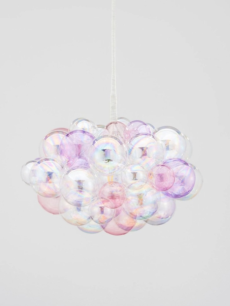 Mermaidcore, like many "core" movements, might not be for everyone. But if you love pastel hues, ocean-inspired design details (scalloping!), and iridescence, then this is the style for you. Some trending Etsy searches related to mermaidcore include scalloped runners, oyster shell ring dishes, mother of pearl trays, and bubble light fixtures or pendants.