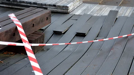 While not, strictly speaking, a deck collapse, there's no doubt that a failed deck railing can still throw you to the ground violently — and you're unlikely to quibble about the distinction when it does. According to CPSC statistics, about 12% of deck-related injuries are caused by railing failures. Your most important tool for identifying railing problems is looking for shakiness or give when you attempt to push against the railing. Deck railings are required to withstand 500 lbs. of pressure in any direction, so you shouldn't notice any sign of movement or instability when you try this, and if you do it could indicate deterioration due to rot. Insect damage is also a possible cause, so it pays to be aware of how to identify deck-damaging pests. Check the fasteners where railing posts attach to the deck's framing. They are subject to all the potential problems discussed above, and fasteners in problem connections should be tightened or replaced. Don't forget to test the railings on stairs, where railing problems are actually the most dangerous.