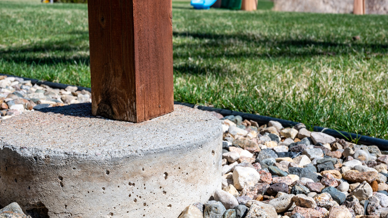 Unsurprisingly, it's also pretty important that the posts holding your deck up are doing their jobs. Have a look at the posts that hold up your deck. Are they in good condition in the place where the post meets the concrete footing? There should be a metal plate and fasteners mechanically connecting the post to the footing, even if it's a pre-cast concrete pier that holds the post in place horizontally. The connectors should not be corroded, and the post should be centered on the footing. Posts themselves should be 6x6 inches or larger in most cases.
