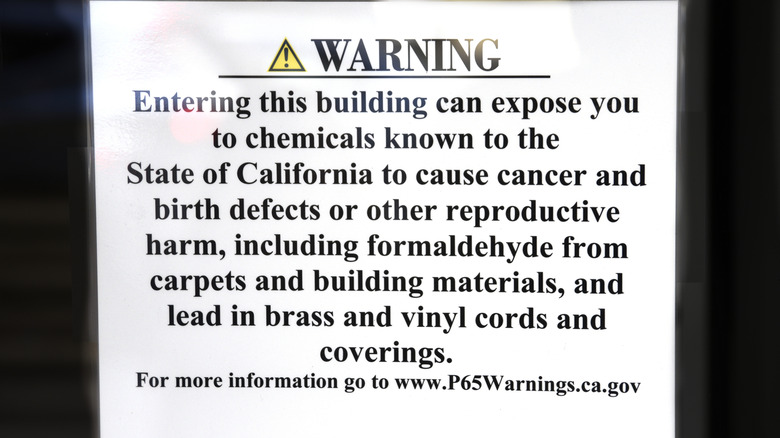 California updates a list of chemicals that can cause cancer and birth defects every year, and at present, there are 900 chemicals on the list. Proposition 65 (also known as the Safe Drinking Water and Toxic Enforcement Act of 1986), requires every California business to place a warning inside their buildings or products that contain a certain amount of these chemicals. The law is important for two reasons: it enables consumers to make informed decisions, and it helps reduce the amount of harmful chemicals found in everyday products.