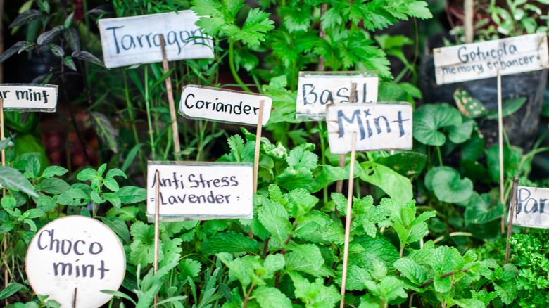 A DIY wine rack planter is a particularly good option for an herb garden, because it comes with predesignated areas for each herb, which allows you to pot them in an organized and visually appealing way. While most herb plants can be potted together, some like mint should have their own growing area, because plants in the mint can take over if it's left to roam free or planted directly into the ground. The separate sections in your wine rack can work well to group certain herbs together like basil, oregano, and parsley, while keeping others like mint on their own.