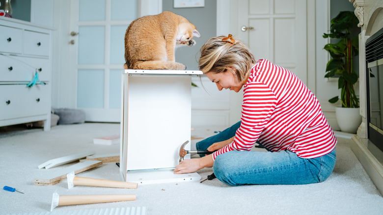 If you are a pet owner, you are familiar with the constant struggle that is cleaning a pet-friendly home. And while most of us have resigned ourselves to a lint-rolling routine and daily vacuuming, there is also the concern of what to do with your pet's toys, food, and other necessities. Luckily, there is a pretty simple DIY hack that turns an old nightstand into a fur-baby feeding station.
