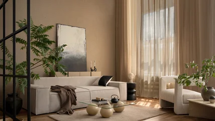 Create an impactful color drenching effect with monochromatic drapes