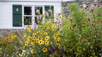 While we're decorating our fences and walls, we'd be remiss not to recommend honeysuckle — at least, the native variety, as many non-native varieties are invasive. The coral or trumpet honeysuckle (Lonicera sempervirens) has a dense, chaotic growth habit. It might be useful on fences or structures you want to obscure or as a privacy screen. There are both climbing and bush varieties. Most have a distinctive honeysuckle fragrance, as well as colorful berries. Because of its blooms, density, and scent, many native varieties of honeysuckle can be the center of attention in your cottage garden.