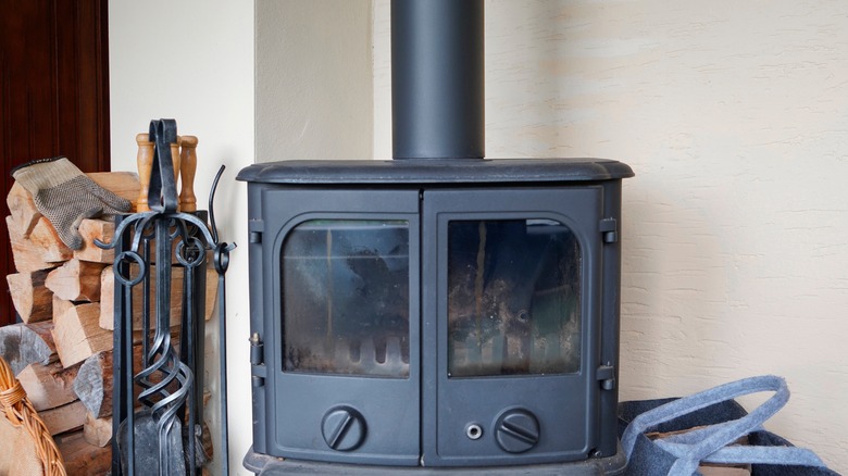 The galvanized stovepipe is hot on the inside, but plays it cool on the outside