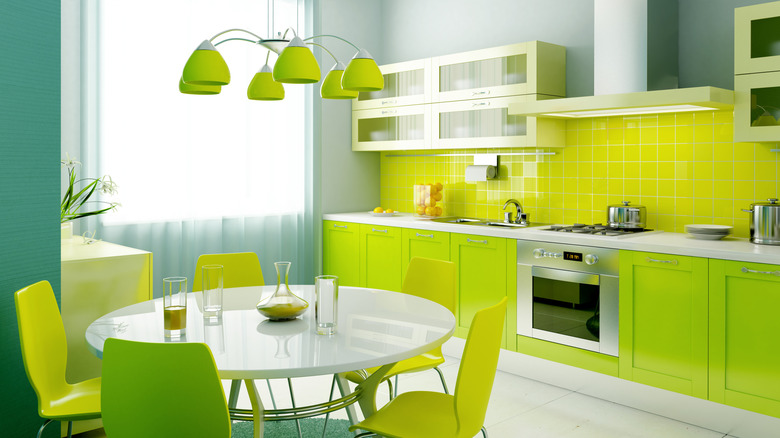 While the title of this paragraph says "lime green," you really could substitute any other neon color name (like orange, yellow, or pink), and the theory would hold. Neon colors can be off-putting and overpowering when used more than sparingly in a kitchen. An excess of an overly vibrant hue like lime green casts an unappetizing, sickly glow over your surfaces, food, and guests that can feel childish or unsophisticated. If you love neon hues, use in moderation for some fun accents rather than drenching the kitchen in it.
